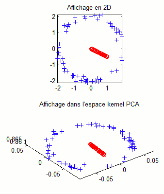 Voici un code MATLAB qui montre comment les données deviennent linéairement séparables dans kernel pca